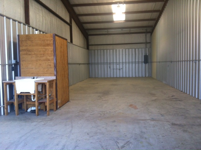 If you need to rent a space, stall, bay, shop, warehouse, flex space, storage unit, product distribution unit or whatever, we can help. All of our units have 12′ tall overhead doors. Some are 12′ wide and others are 16′ wide. We try to be versatile by offering some units with restrooms and wash sinks while others are designed more for just large storage. Most also have a 3′ wide walk through entrance door. All are insulated with protective steel R-panels on the walls. Skylights are standard for maximum light distribution during the day and economical metal halide light fixtures for the evenings. Optional slide in 10’x16′ air conditioned offices with a additional restroom is available upon request.